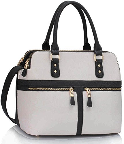 Fashion Only UK offer Ladies Women's Fashion Designer Celebrity 3 Zipper Tote Bag Hot Selling Quality Faux Leather Cross Body Bags Handbag CWS00250 (Black/Off White). This awesome product currently limited units, you can buy it now for £12.99, You save -