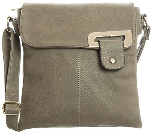 Best Seller! WOMENS MEDIUM MULTI COMPARTMENT CROSS BODY SHOULDER MESSENGER BAG (Grey - Gold) Review
